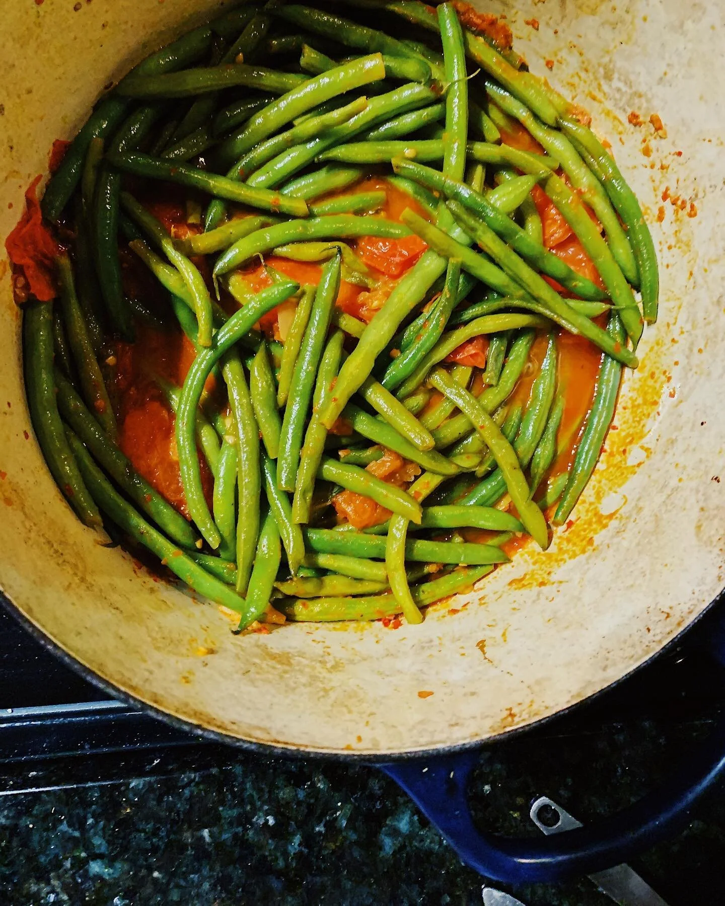 Harissa-Braised Green Beans with Herbs by Alison Roman
